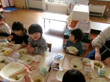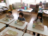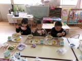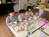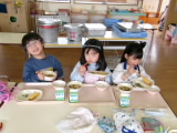 今年度の給食は明日で最後です。日々の給食では「今日のご飯なあに?」「これ美味しい!」と、お友だちと楽しくおしゃべりしながら、モリモリ食べる姿がみられます。明日の献立は、みんなが大好きなデザートも出るそうです。一年間、心と体をつくる栄養を届けてくれた給食センターさんへの感謝の気持ちをこめて、最後の一口まで味わいたいと思います♪