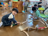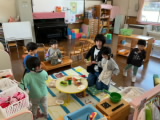 年少組は今日も元気です。先生と触れ合いながら、それぞれやりたい遊びを見付けて、ひととき楽しく遊ぶ姿が見られました。