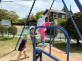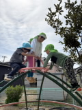 暖かで良い天気が続きます。年長組、年中組は近所の公園に散歩に行きました。友達としっかりと手をつなぎ、車に注意して横断歩道を渡りました。公園ではブランコやターザンロープなど、園にはない遊具があります。初めての遊具に挑戦したり、広い公園で鬼ごっこしたりして遊びました。