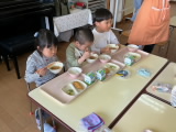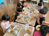 給食の時間には、「おなかすいた!」という声が聞こえ、夢中になって食べ進める様子もありました。