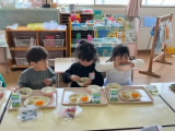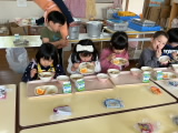 新年少児の給食が始まって1週間。少しずつ慣れてきたようで、自分のペースで食べる姿が見られました。