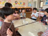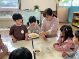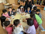 給食後にゆであがった竹の子を、幼稚園のみんなで食べてみました。シャキシャキして、ちょっとほろ苦くて、とてもさわやかな味がしました。「おいしい!」「お代わり!」みんな大喜びで春の味を味わっていました。