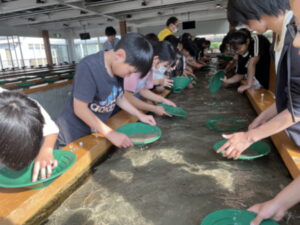 西三川ゴールドパークで砂金取り体験。金はざっくざく採れたのでしょうか?この後は、金について学びに きらりうむ佐渡へ。