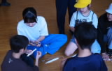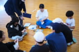 味方中学校生徒は、朝8時半に各家庭の状況リボン(無事であれば黄色、要支援は赤)を玄関前に結び、味方地区それぞれの避難所で物資を確認した後で登校、小学生と一緒に避難所受付をし、マスクや雨具を作る活動をしました。小学生を励ましながら活動する中学生の様子に、ほほえましさとたくましさを感じました。