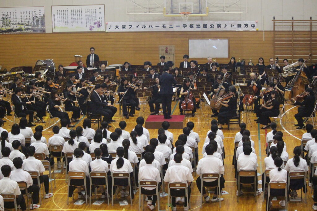 大阪フィルハーモニー管弦楽団の皆さんが、文化庁の学校巡回公演で来校され(演奏、運営で、総勢80名!)、演奏を聴かせてくださいました。