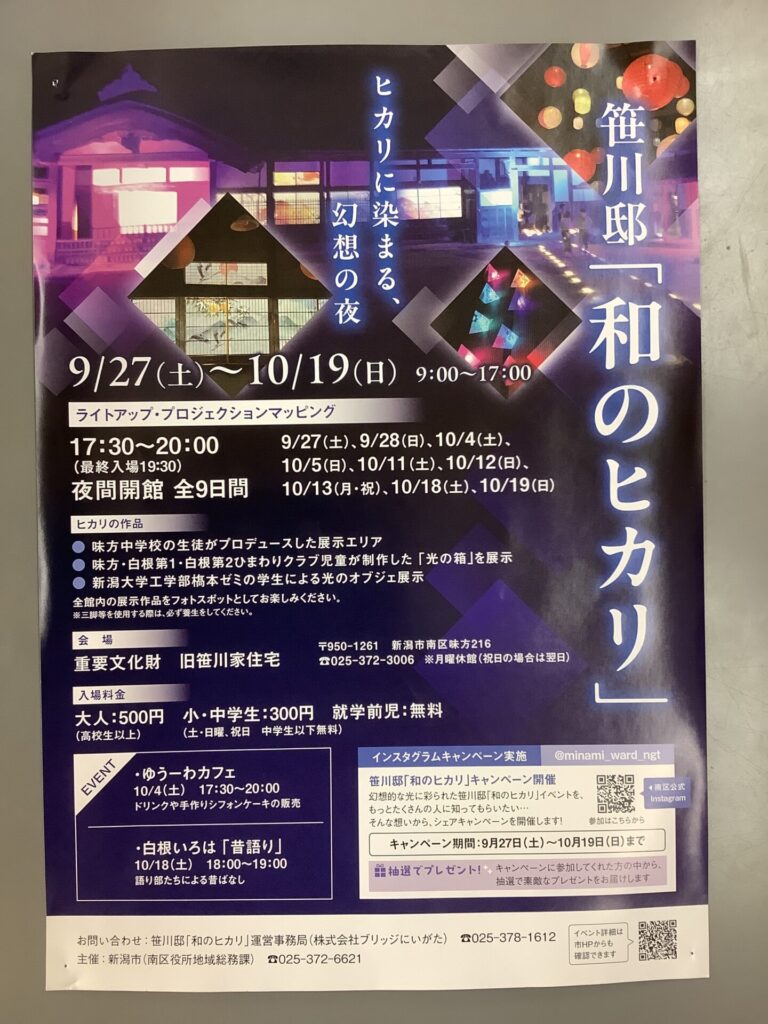 笹川邸では、9/27(土)から10/19(日)の期間、「和のヒカリ」のイベントが開催されています。