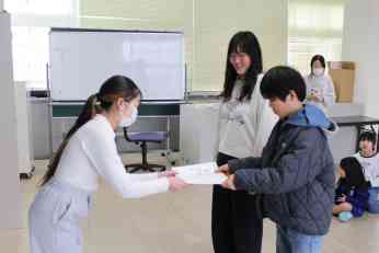 こめっ子クラブで作成していた大型カルタが完成し,いよいよカルタ大会です。こめっ子スタッフの方が読む札をよく聞いて,体育館いっぱいにまかれた絵札を取り合いました。正しい絵札かどうかは近づかなければ分 …