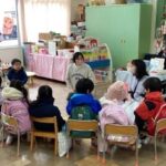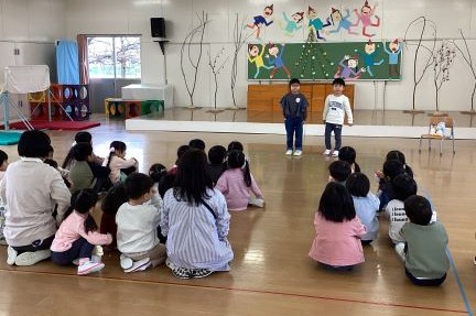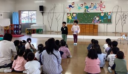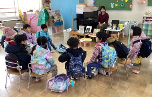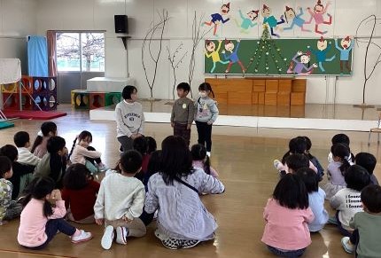 園長先生から、「他にも何かお手伝いはありますか。」の問いに、「卵を割ってる。」や「お料理を作るお手伝いをしてる。」の言葉が聞こえてきました。普段から、自分ができることを手伝っている子どもたちの様子が伺えました。冬休み中も、はりきってお手伝いをする約束をしました。
