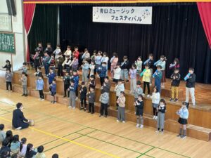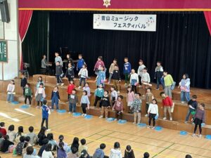 さわやかな秋晴れに恵まれ、多くの保護者や地域の方々を前に子どもたちはすてきな歌声と演奏を披露しました。