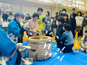 6年ぶりのもちつき大会復活です。300人を超える参加者で大盛り上がり。みんなで美味しいお餅を食べました。PTAのみなさんありがとうございました。