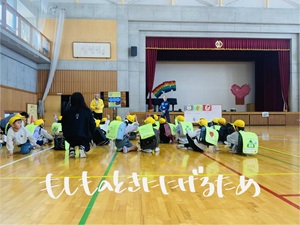 1年生はもしも不審者に声をかけられたらどうするかを学びました。大きな声で「助けてー!」とさけぶこと、人との距離はどのくらいがよいかなど自分を守る術を学びました。
