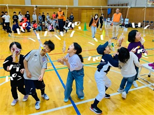 日曜日、スポーツ振興会さん主催の「三世代交流大運動会」を行いました。100人以上の子ども、保護者、地域の方が集まって様々な競技を行いました。中でも大人気のパンくい競争は毎年大盛り上がりです。