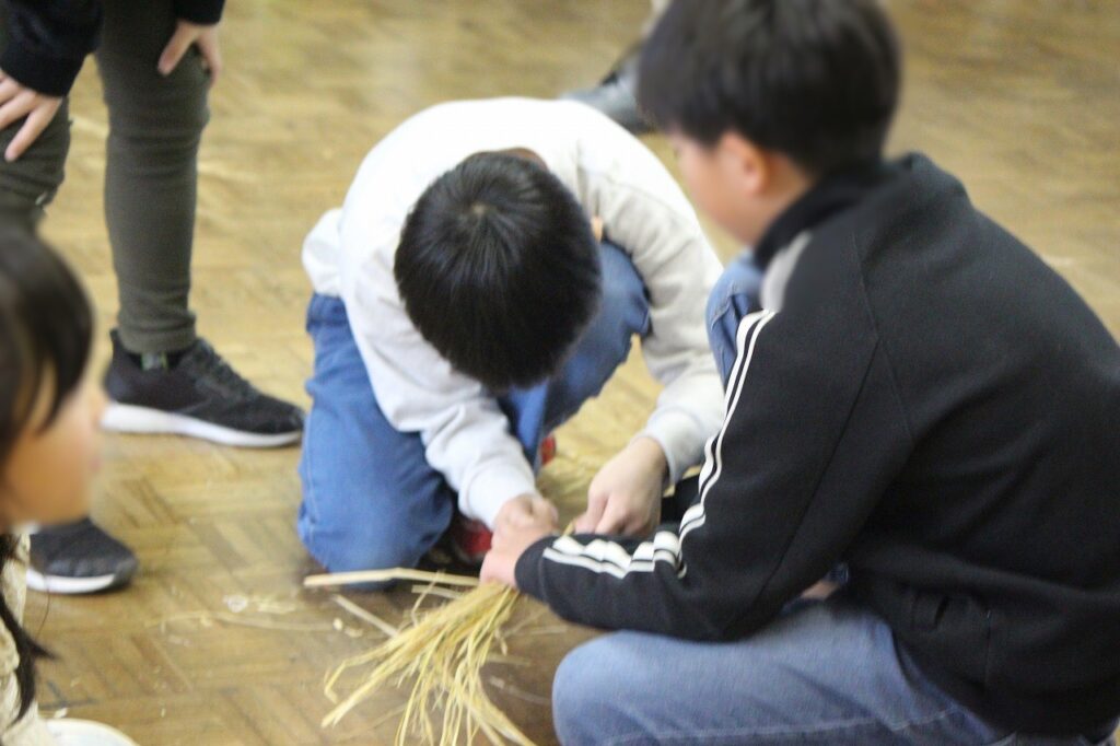 1月16日(金) 3年生は、総合的な学習の時間で「藁アート」体験をしました。 最初の藁の形からだんたん違う形になっていく様子にワクワクしていました。