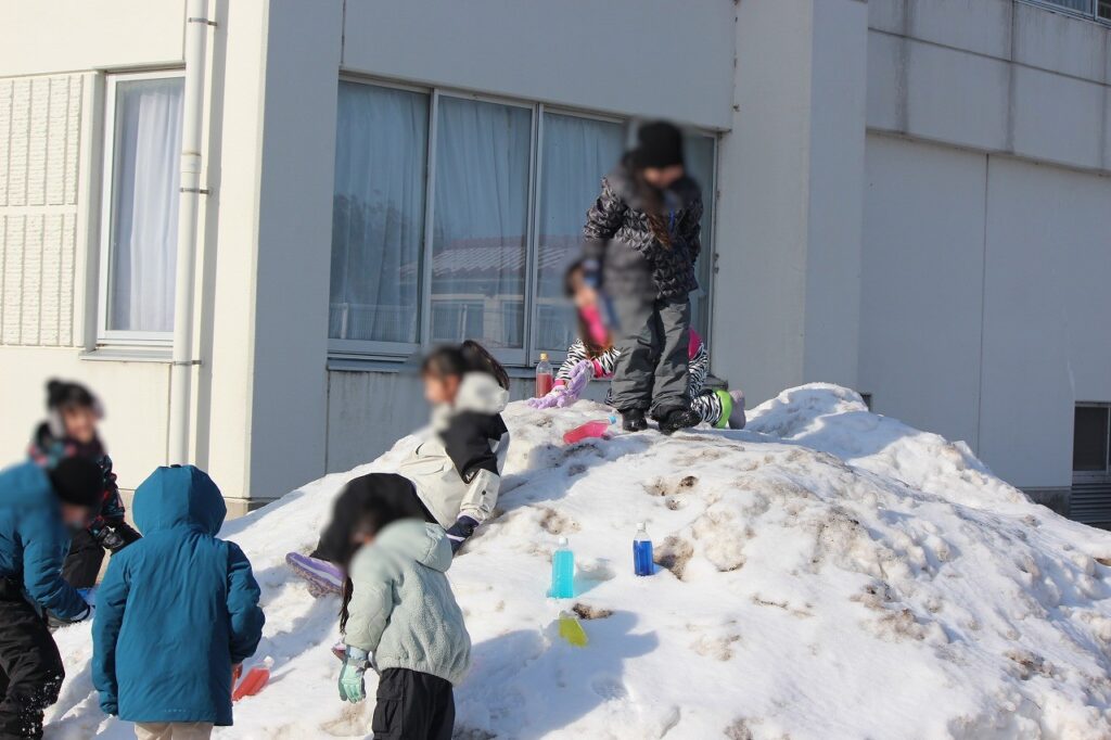 2月10日(火) 1年生は、図画工作でカラフル色みずを楽しみました。 カラフルな色みずを真っ白な雪山に置き、様々な想像を膨らませていました。