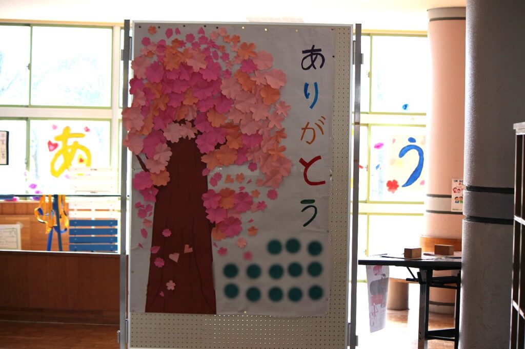 3月9日(月) 児童玄関の入り口には、6年生への感謝の気持ちを表した手作り看板がいつもお出迎えをしています。