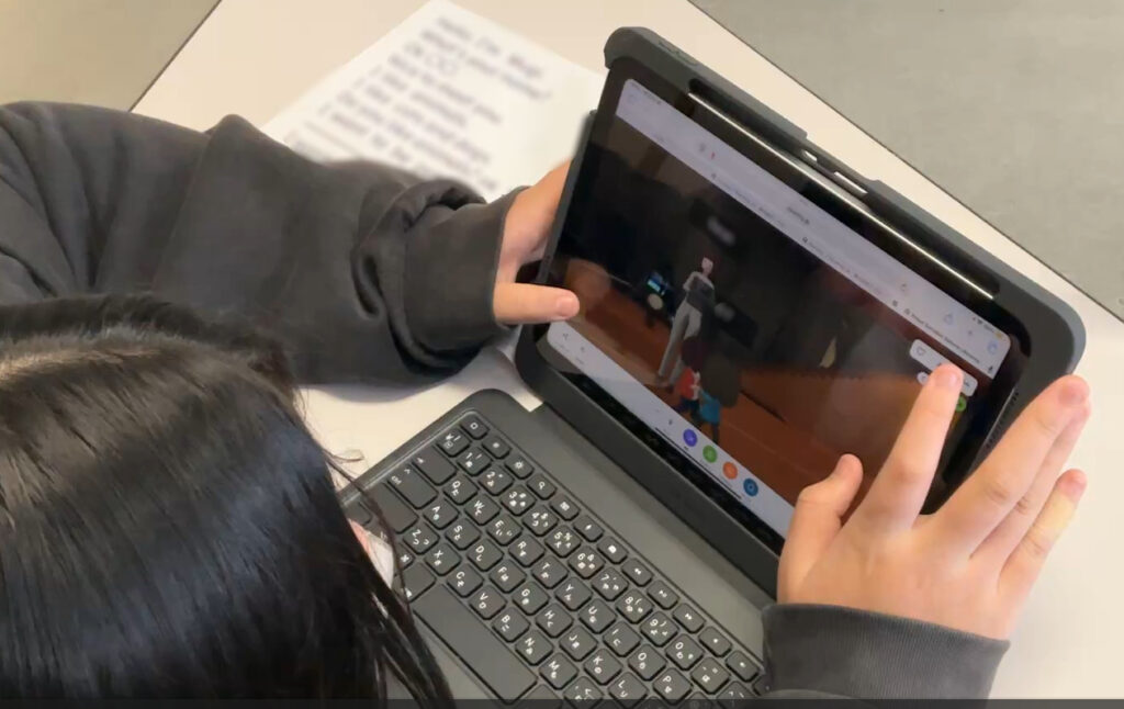 1月29日(木) 6年生は、はじめてメタ―バスを使っての外国語の授業を行いました。岐阜の大学生、岩手のJETさんとメタ―バス空間の中で初めての出会いと英語での会話でコミュニケーションを図りました。