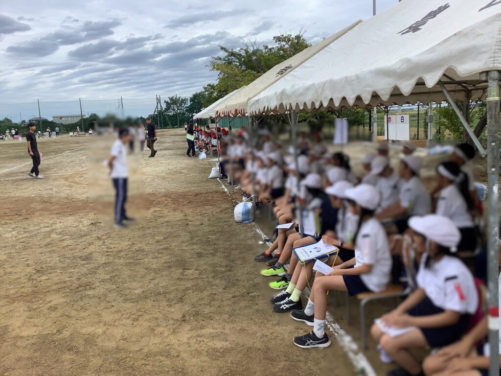 児童玄関のラウンジには恒例のてるてる坊主が飾られていました。天気予報が目まぐるしく変わる中、子どもたちの願いが届いたのか、延期することなく開会式の準備が始まりました。