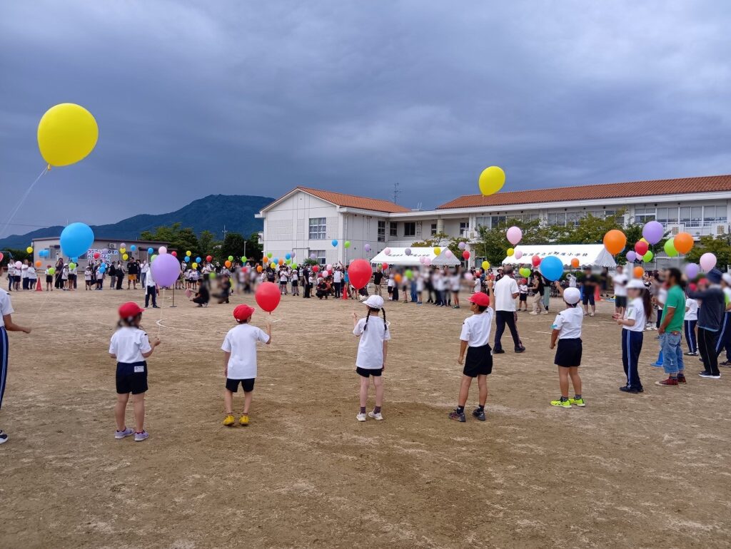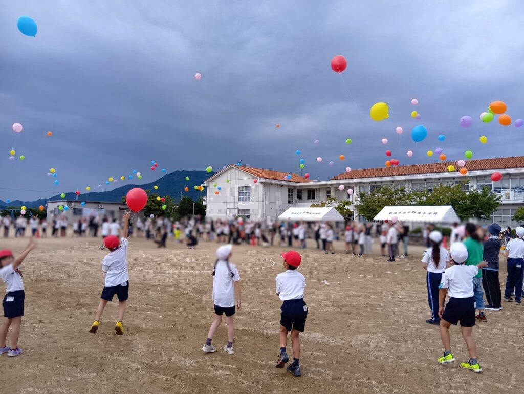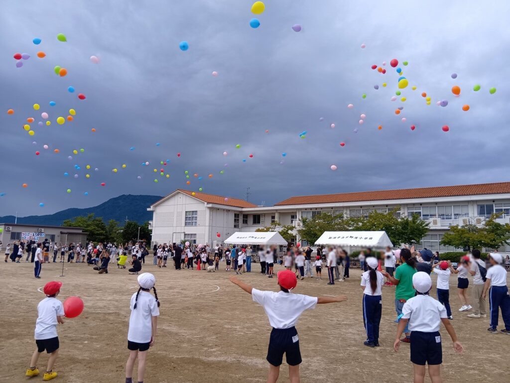創立150周年のお祝いを込めて、全校児童・職員・保護者・地域のみなさんと、バルーンセレモニーを行いました。たくさんの風船をみんなで一斉に放つ景色は、松野尾小学校の150年の歴史を想像させる素晴らしい時間となりました。