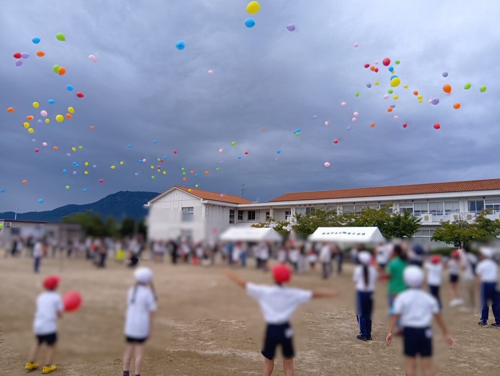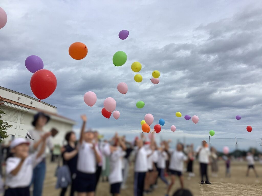 子どもたち・職員・保護者・地域の人たちの「これまでの松野尾小学校の歴史とこれから…」に想いを馳せて、一斉にバルーンリリースを行いました!