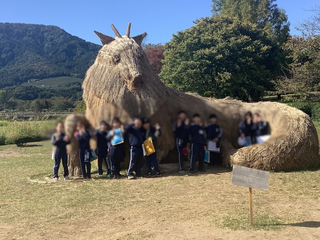 4年生は、総合的な学習の時間で、上堰潟公園の「藁アート」について学習しています。区役所の方から藁アートに込められた想いを学び、実際に見学をしました。