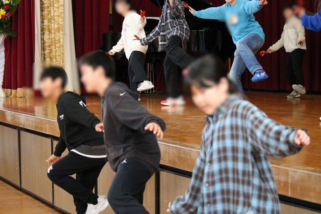 当日に向けて練習してきた「松野尾ソーラン」を全校で披露しました。たくさんの方々前で、全員で踊るソーラン節は、迫力満点でした。