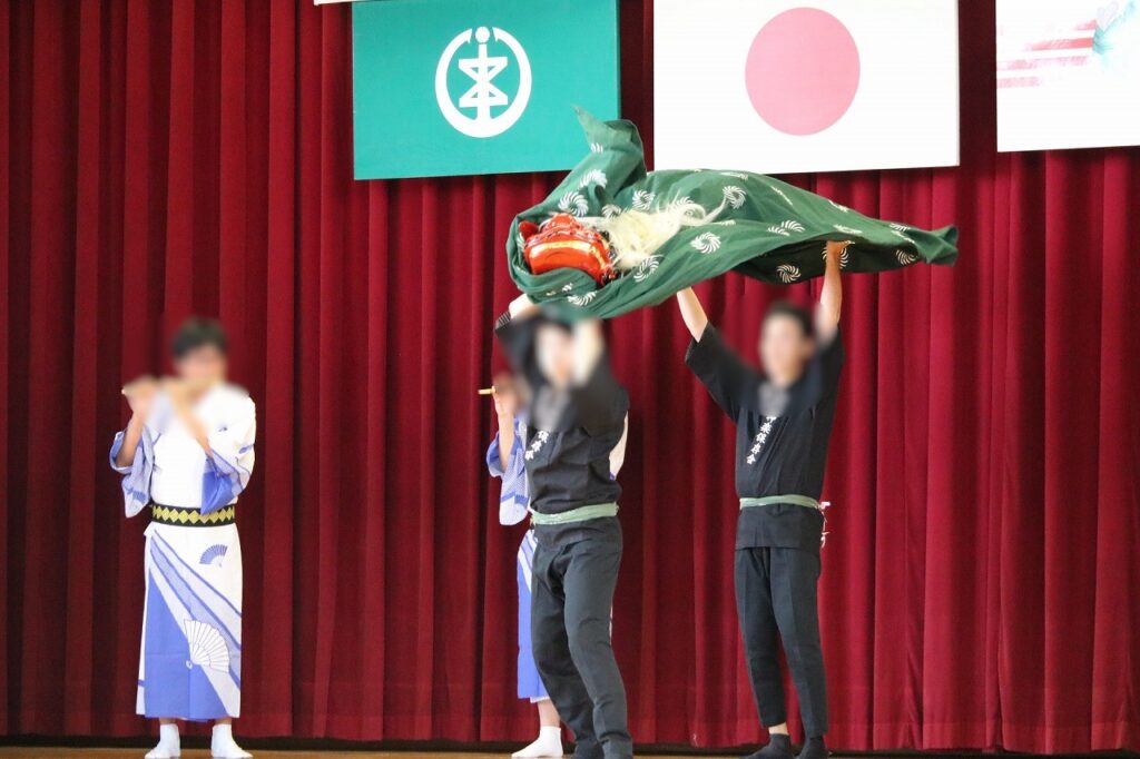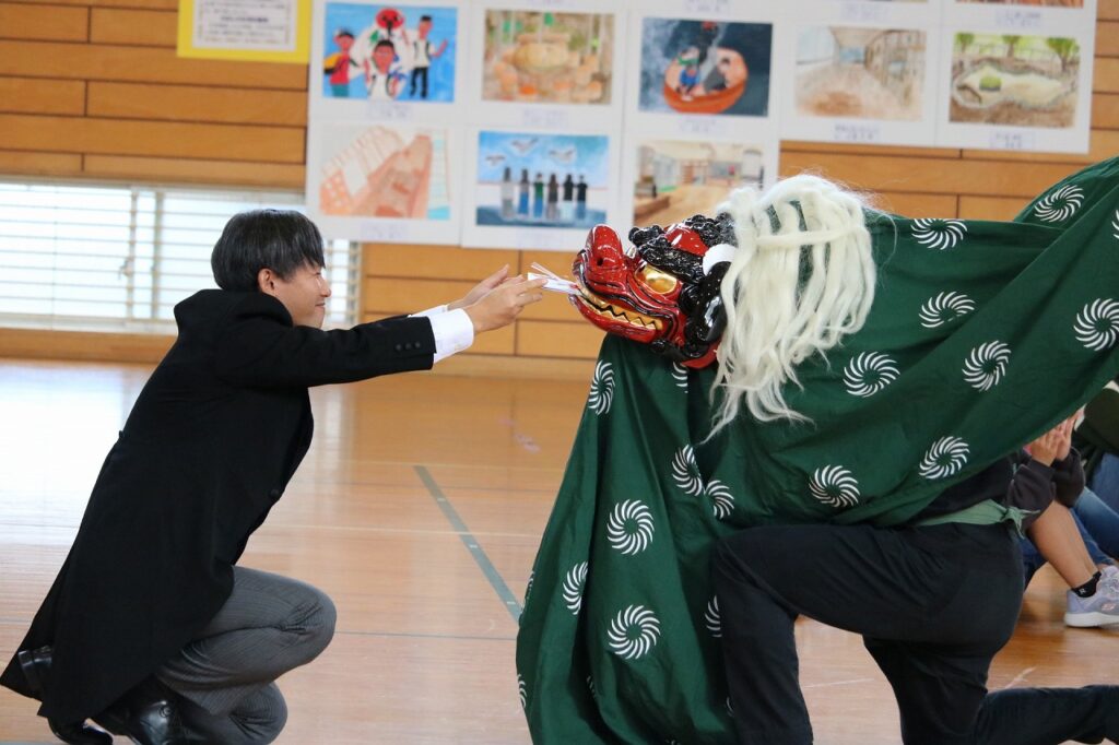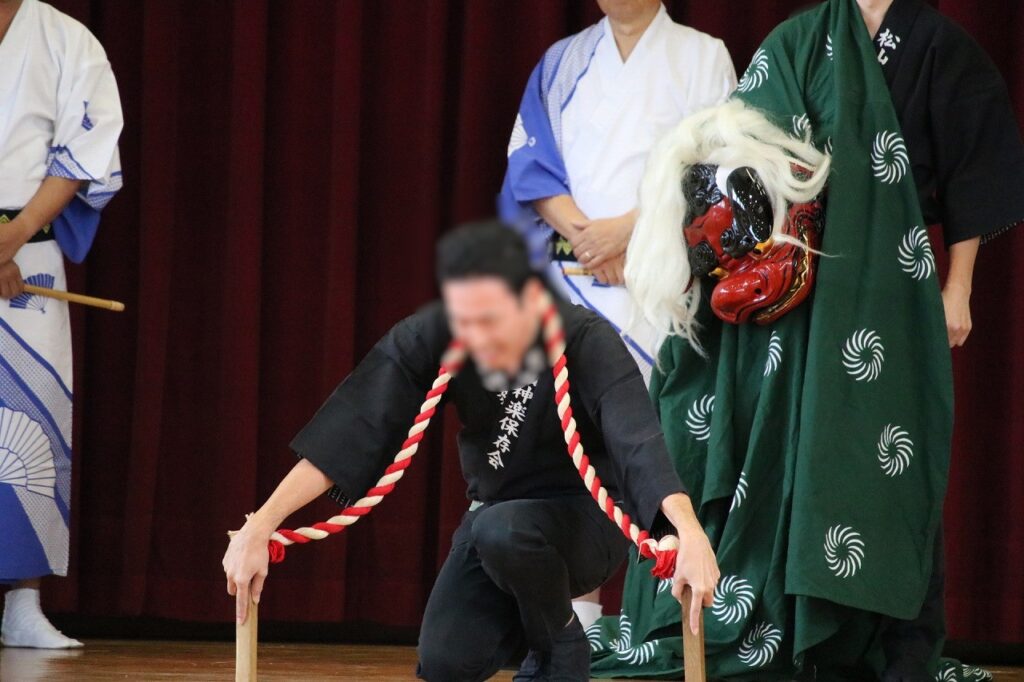 式典に華添える「松山神楽」は、地域の伝統的な舞です。