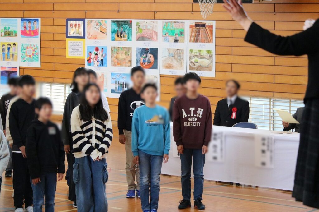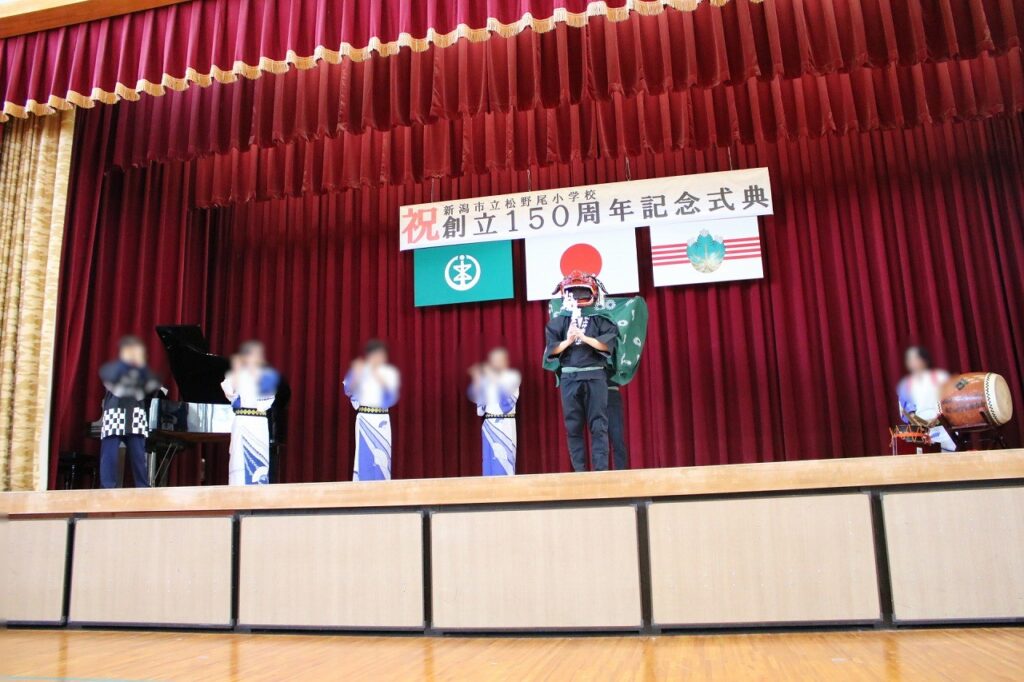 現在の松野尾小学校の校歌は、2代目です。式で披露された初代校歌の後に、会場全体で斉唱をしました。全校・参加者の方々の歌声は、圧巻でした。