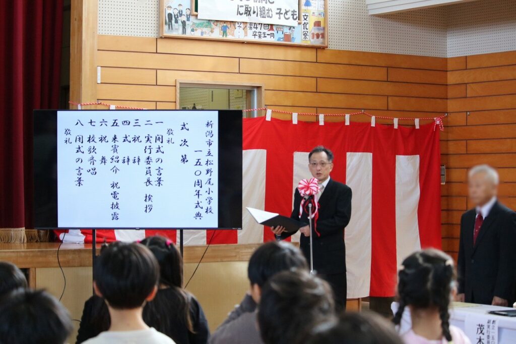 式辞では、「松野尾尋常高等小学校」時代の初代校歌をお披露目させていただきました。