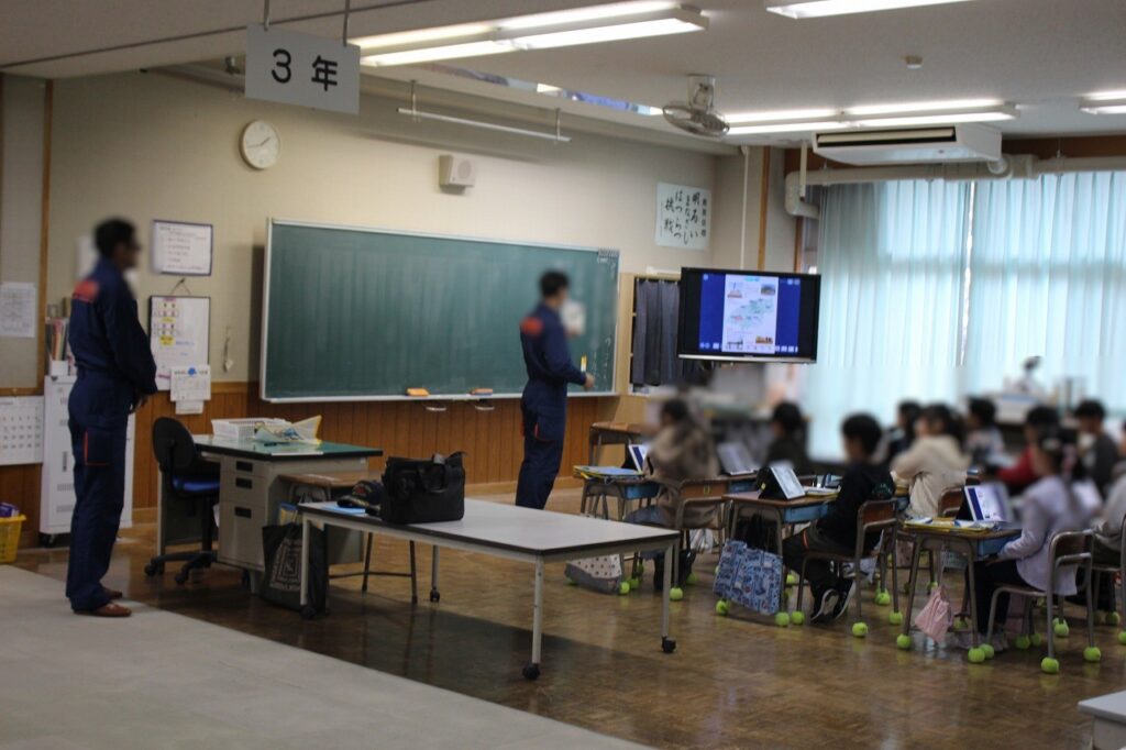 3年生は、消防車の方に来ていただき、日頃の仕事内容や取組になどを教えていただきました。