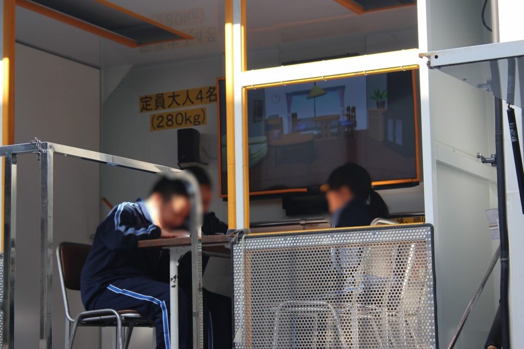 4年生は、地震の揺れを実際に体験する活動をしました。
