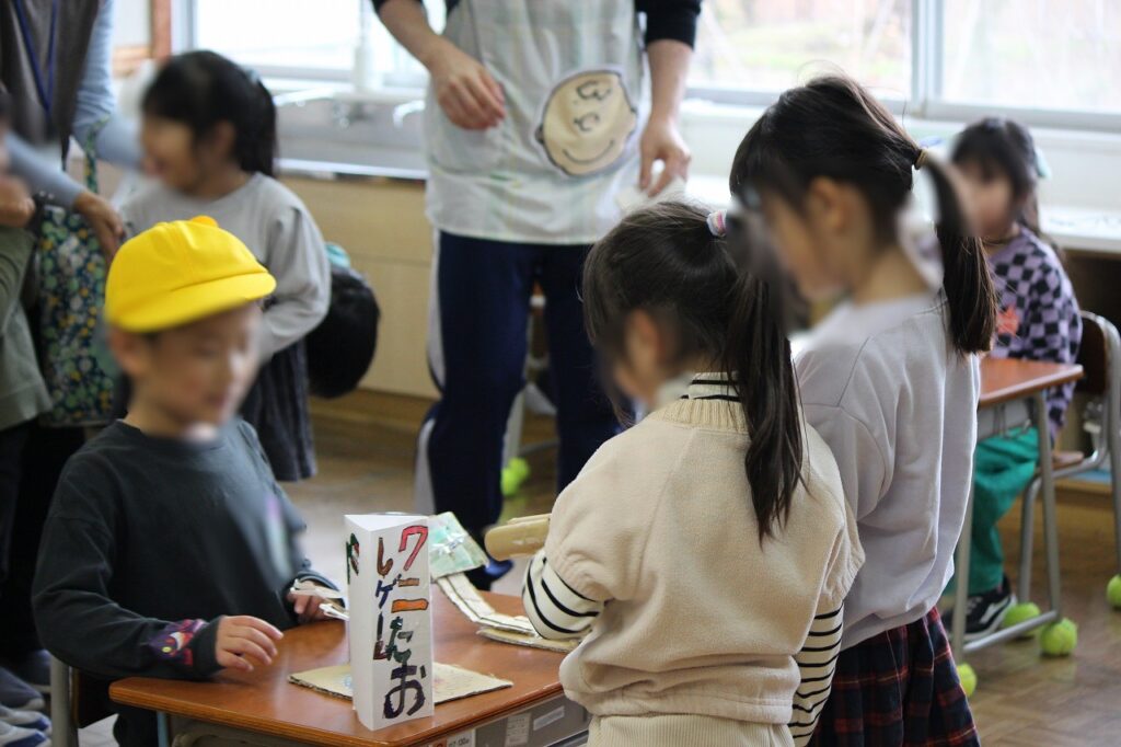 1年生は、年長さんに楽しんでもらおうと楽しいお店を企画しました。
