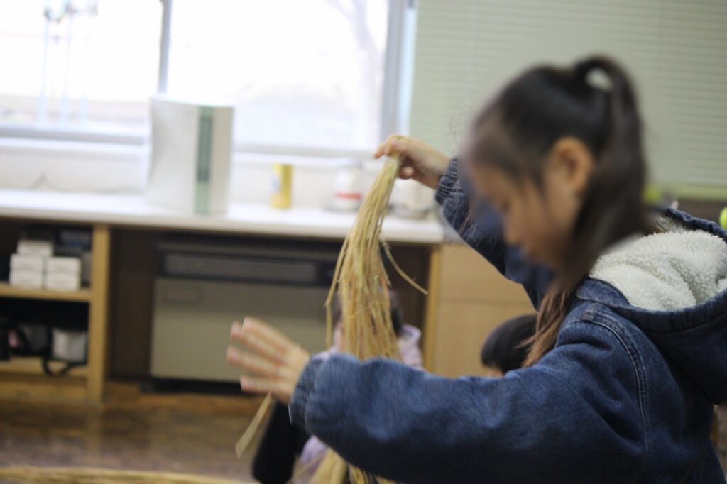 3年生は、総合的な学習の時間で「藁アート」体験をしました。
