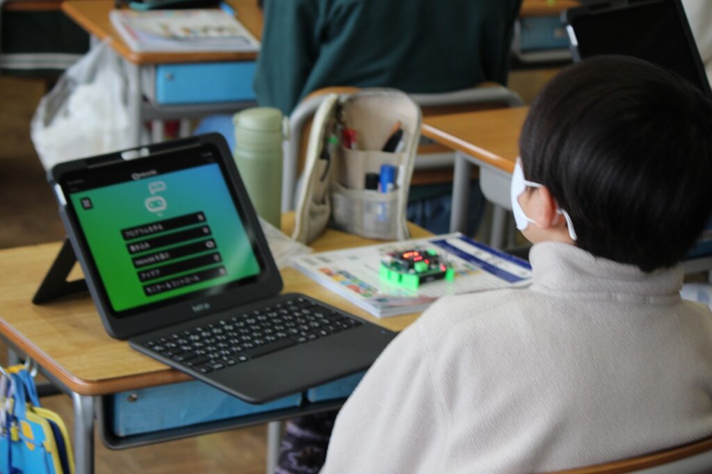 6年生は、理科の授業でマイクロビットを体験しました。子どもたちは興味津々で授業に取り組みました。