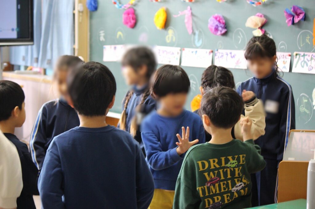1年生を中心に、小学校の様子を伝えたり、ゲームや活動をして楽しみました。