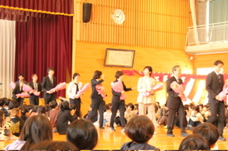 6年生を送る会がありました。 1年生が6年生と手をつないで入場するところから始まりました。 2年生は体育館の飾りつけと感謝の言葉 3年生は感謝の気持ちを書いたメダルの贈呈とダンスの発表 4年生は全校ダン …