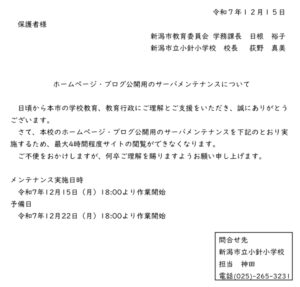 学校ホームページ サーバメンテナンスのお知らせ