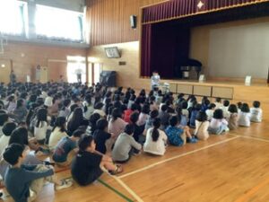 校長からは「大切なもの」として、子どもたちに馴染みのあるアニメの登場人物3人の関係について問われました。