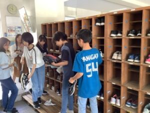 終業式を終え、学級ごとに楽しく過ごしたり、下駄箱をきれいにしたりと、前期の節目をしっかりやりきりました。 来週からの後期に備えることができました。