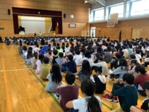 中学年の2名が後期の抱負を紹介し、全校で気持ちを新たにしました。