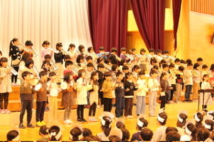 本日はミュージックタイムにお越しいただき、ありがとうございました。今まで頑張って練習してきた成果を、学年の友達みんなで発揮することができ、子どもたちも大満足な様子でした。ご家庭でもお話を聞いてあげてください。