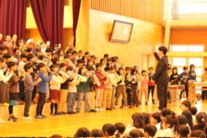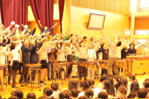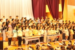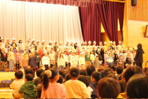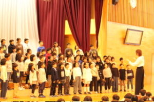 本日はミュージックタイムにお越しいただき、ありがとうございました。今まで頑張って練習してきた成果を、学年の友達みんなで発揮することができ、子どもたちも大満足な様子でした。ご家庭でもお話を聞いてあげてください。