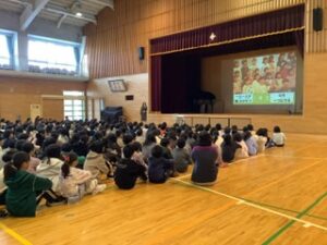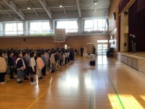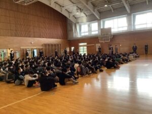 真剣に校長の話に聞き入る姿からは,自分だけでなく,他の学年に対してもたたえ合う気持ちが溢れている様子を感じることができました。