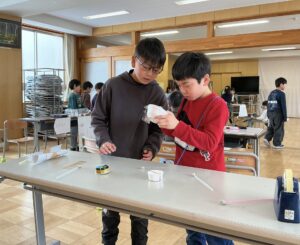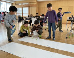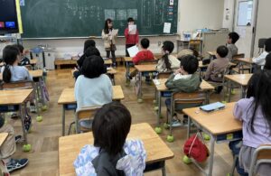 2年生は生活科で学習したことを活かし、1年生をお客さんとして招待して一緒に活動しています。1つ上のお兄さん、お姉さんがしてくれるお店に興味津々な1年生。一緒に楽しんでいました。