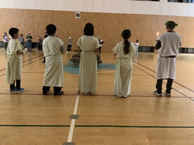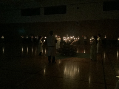 夕方のキャンプファイアは雨のため、キャンドルファイアに変更となりました。真っ暗な体育館にキャンドルが灯る様子は幻想的でした。ダンスや班の出し物でおおいに盛り上がりました。