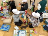 この日の単元は「かたちあそび」です。自由進度学習の要素を取り入れての実践です。1年生の子どもたちは、学ぶ内容や順序を自分で決めて学習を進めていきます。一人でじっくりと取り組む子、友達と協力しながら活動する子と、さまざまな学びの様子が見られました。どの子も持ってきたさまざまな形の箱を使って、積み上げたり並べたり転がしたりしながら、それぞれの形のもつ特性にたくさん触れ、特徴を理解していました。1時間たっぷりと活動に没頭する1年生のもつ潜在力に驚かされました。