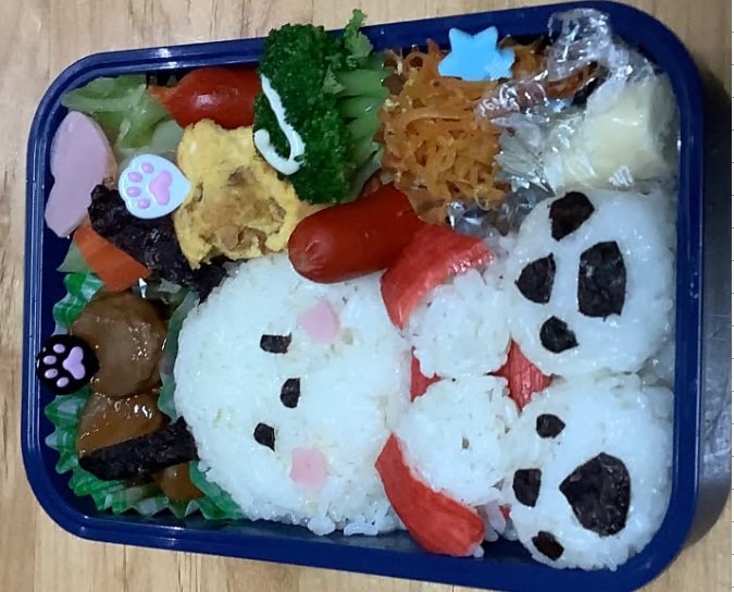11月25日(火)に「なかよし弁当の日」を実施しました。1~4年生は、家族の人と相談して弁当の中身を考えました。5,6年生は弁当作りに挑戦しました。なかよし班で自分の作った弁当を紹介しあい、おいしくいただきました。写真は6年生が作ったキャラ弁当です。力作ぞろいです。