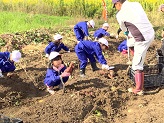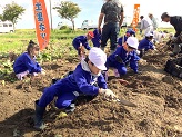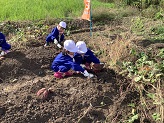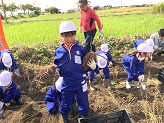 10月9日(木)1,2年生が春に植えたサツマイモの収穫に行きました。掘り出すが難しいくらいの大きくきれいなサツマイモがごろごろとたくさんとれました。子どもたちは、友達と協力したり、地域の方に手伝ってもらったりと一生懸命に掘りました。大きなサツマイモを大変そうに持ち上げて大喜びでした。根岸地区保全会の皆様、土地改良区の皆様、JAの皆様本当にありがとうございました。今年も、お米や野菜、果実など根岸地区の魅力にたくさん触れ、たくさん学ぶことができました。