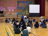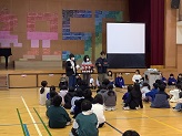 11月19日(水)児童朝会で「ねぎフェス開会式」がありました。見どころ紹介では、学年の代表が自分たちの出店の宣伝を行いました。どのお店にも「行ってみたいな」という気持ちになりました。最後にダンスクラブのオープニングセレモニーがありました。「ねぎフェス」を盛り上げるかっこいい踊りが披露されました。今回もあの人が登場しました。「協力!・工夫!・楽しむ!」明日の「ねぎフェス」がとっても楽しみです。
