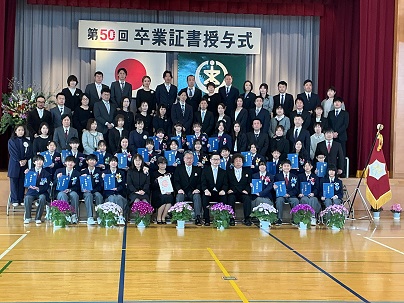 3月19日(木)第50回卒業証書授与式が行われました。創立50周年記念の年の最高学年として、「最高の学校」を目指して、全校の手本となり、がんばってきた卒業生の姿は、正に「最高の6年生」でした。保護者の方と来賓の皆様のもと、卒業生の立派に成長した姿と全校の温かな雰囲気、心のこもった歌声で感動的な卒業式となりました。卒業生の新しい旅立ちにエールを贈ります。