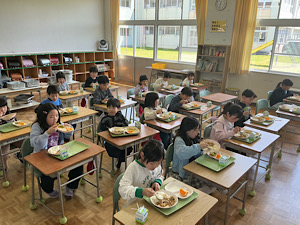 今日から給食が始まりました。給食の配膳の仕方について、全員で確認したのち、準備を始めました。さすが、2〜6年生は素早くみんなで協力して準備を進めることができました。今日のメニューはマーボーライスとごま入りもやしのナムルでした。明日からは1年生も給食が始まります。楽しみですね。